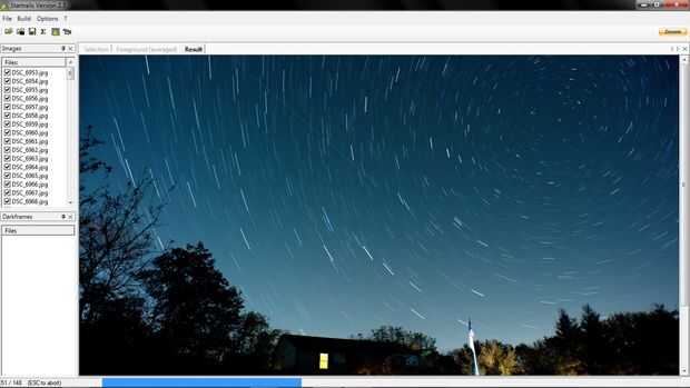 -Ahora empieza la diversión, a la espera. El programa ahora es apilar las imágenes en una nueva imagen. Puede verlo en vivo como va, como se ve en la imagen 4.