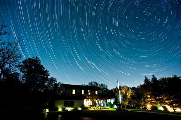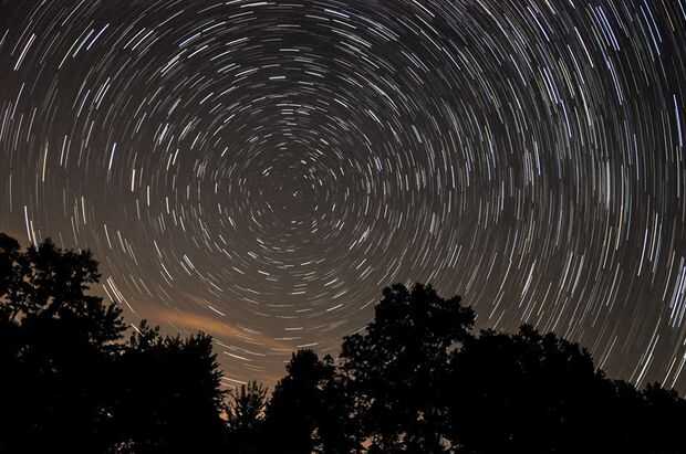 Startrails fotografías son fotografías de larga exposición que muestran el movimiento aparente de las estrellas por el cielo en un movimiento circular.Estas fotografías se pueden tomar para medir la rotación de la tierra (o la longitud del día sidera
