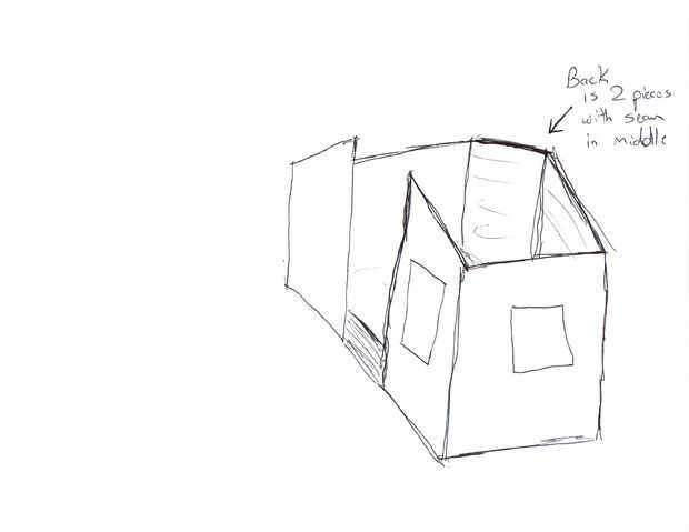 Después tenía mi base sólida junto, sujeta la madera para hacer una caja de madera contrachapada de las clases. Se puede ver que ya tenía el windows recortado, así como la pendiente de la cubierta.