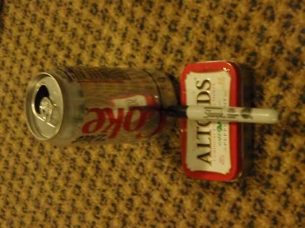 poner el sharpie en el altoid tin y dibuje un círculo alrededor de la parte inferior de la lata. Esta será la línea corta.