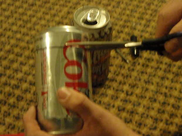 corte a lo largo de la línea que hiciste. hacerlo en ambas latas.
