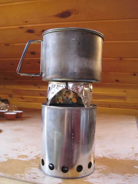 Todo puede ser construido en aproximadamente una hora. Este modelo pesa 6,6 oz (187 gramos) después de varias cocciones y anida en, por ejemplo, el pico de nieve 900 Ti o Al pote.