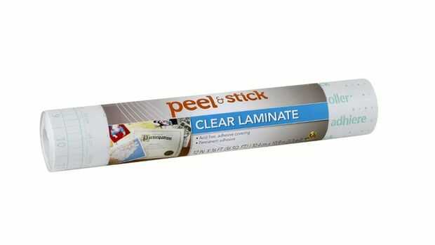 La alternativa era un tipo de hoja laminada. Por suerte, encontramos un rollo de laminado de vinilo transparente en nuestra tienda de hogar. Se anuncia para laminar documentos y fotografías, pero se vende junto con los trazadores de líneas del cajón o papel de contacto. Un rollo esto es sobre 5 o 6 dólares y puede obtener un montón de hojas fuera de él. Unos 72 hojas para ser exactos, si tienes el pie 36 rollo. Así nos pone en aproximadamente.08 por hoja o sobre.01 centavo por etiqueta.