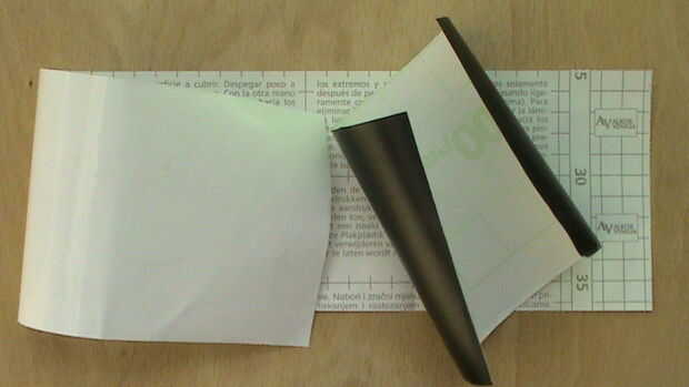 Al principio se necesita un papel adhesivo en color blanco para un triángulo y la hoja de color negro para el ojo.