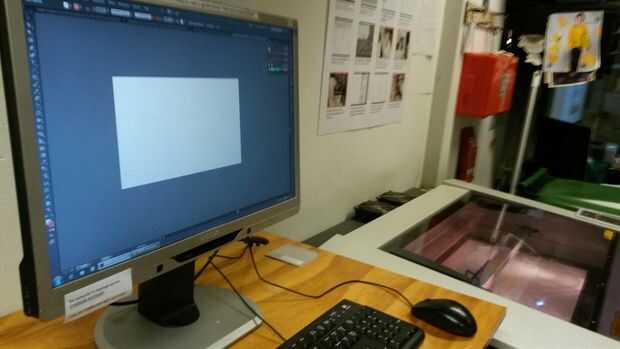 Una vez realizado el diseño final que puede comenzar a utilizar el lasercutmachine. No dude en preguntar al administrador de dispositivos. Probablemente será más que feliz de ayudarle. Abra su archivo de Illustrator y la placa de madera en la máquina.