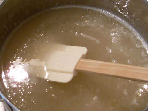 Una vez disuelto, llevar a hervir sin revolver. No quiero revolver porque esto hará que la mezcla a la espuma para arriba y la espuma de azúcar de forma en la parte superior. Cocinar a fuego lento durante 20 a 25 minutos.
