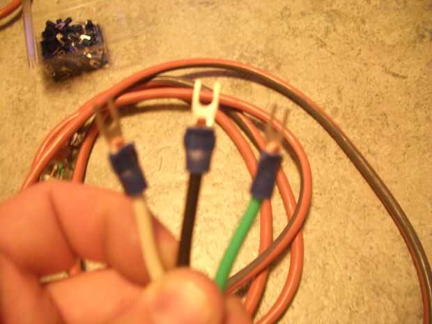 8). Coloque un terminal de horquilla en el cable pelado y prensar en.