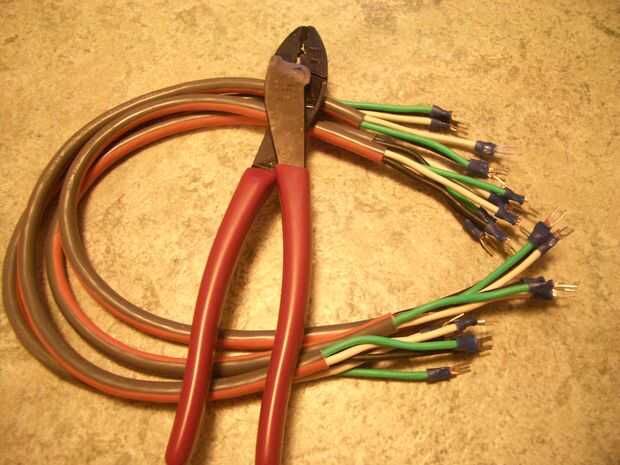 12). Coloque un terminal de horquilla en el cable pelado y prensar en.