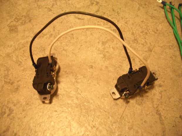 3). Conecte un cable blanco y negro a cada salida en pares. Conecte el cable negro y el tornillo de oro, el blanco al tornillo de plata. No utilice el tornillo verde todavía. Conectar los cables a los tornillos de la parte inferior en la primera salida y los tornillos de arriba en la segunda salida.