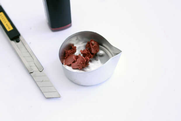 En este paso, se derrite una pequeña cantidad de nuestro lápiz labial favorito y viértalo en el molde.
