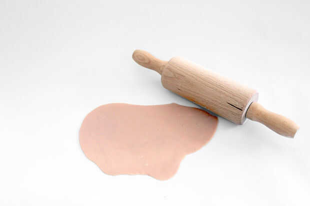 En primer lugar, extienda una capa delgada de Fimo/Sculpey, solamente cerca de 2mm o 1/16 de pulgada de grosor.