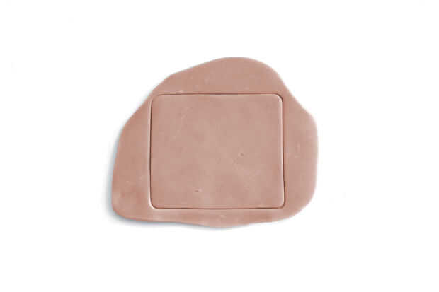 Entonces utilizar su recipiente (lata de cigarrillos) como una especie de cortador de galletas para cortar la forma exacta. Esta será nuestra base. Poner esta capa a un lado por ahora.
