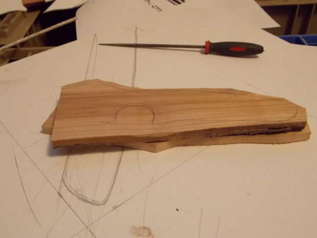 El mango es el siguiente, uso "atractiva" de la madera dura por lo menos 1/4" espesor hasta 3/8". En este caso estoy usando la cereza de estrangulación que molió en la primera sección.