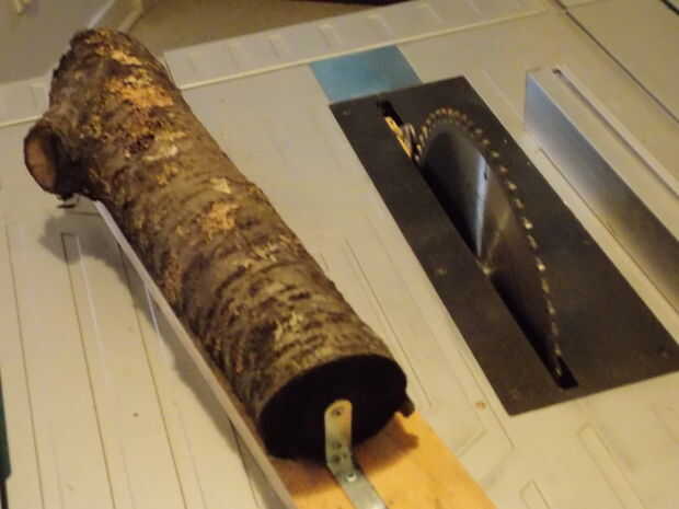 Jodido el registro a la Junta utilizando una escuadra en un extremo y dos en el otro extremo para que mi registro se mueva (para asegurar suficiente del registro quedó colgando sobre el borde de corte que me dé un lado plano recto.) Luego pasé que cerca de mi mesa de sierra para que la Junta solo quisiera tocar la hoja y funcionó el registro aunque para mi primer corte.