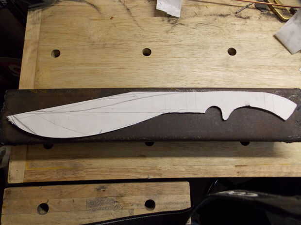 He puesto mi patrón en el material y trazada alrededor de él con un marcador. Estoy usando un pedazo de hierro de canal (3 1/4 "X 1 1/2" y 1/8" de espesor) que me dieron como chatarra en el trabajo.