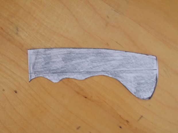 En quinto lugar, grabó dos conjuntos de dos piezas de madera juntos trance el patrón de escalas de la manija (ver foto) en ellos y áspera recorto usando una sierra de contornear. Entonces grabó los dos conjuntos de escalas cortadas áspero dos juntos y final formarlos usando lija tambores en mi taladro. Entonces poner uno de los cuchillos sobre la pila de escalas perforé las asas para recibir los remaches. Separados y marcados las escalas izquierda y derecha y cuchillo de uno y dos. {Asegúrese de forma y arena de la zona de recazo de escalas end (donde el mango se encuentra con la hoja). Una vez que se pega no podrá de forma alguna más.}