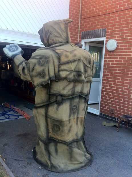 En la casa ahora y la aerografía realmente sacaron las texturas de los materiales. Me concentré en hacer mirar más sucio, profundizar las naturales sombras que caen sobre los trajes, lo adornan con sus estrellas y tratar de hacer las costuras estallar hacia fuera un poco a. Creo que dejé en el tiempo, no demasiado. El ruedo fue cortado y estaba siendo usado por alguien de similar altura a mí para detenerme de matarme por tropezar con las túnicas de mi hijo mayor surgió la gran idea de poner un aro de hula en la parte inferior. Un aro de hula no tengo pero tengo una manguera de jardín, tenía uno! Un poco de él ahora es el protector de dobladillo!