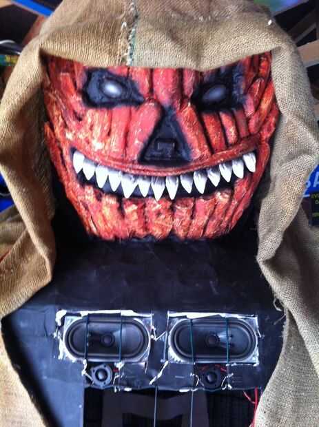 Thought you may like to see my Halloween costume for this year. Comencé en abril del 2011 y ahora está casi acabado. El tema es el de un calabaza cabeza "guardián del cementerio" y está parado mientras se está usando en 8'6 "alto! Es inclus