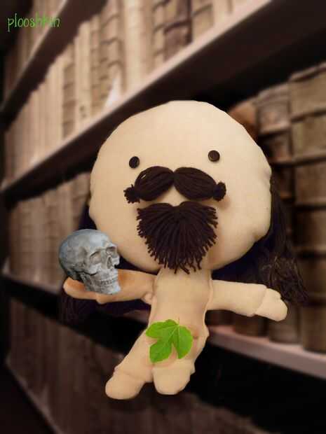 Otro día, otro peluche! Éste comenzó meses atrás como un dibujo en mi cuaderno de "ideas". El plan era para un amigo que pasa a ser un gran iluminado y está escribiendo su tesis sobre "La tempestad" de Shakespeare. Pasaron meses y él seguía siendo nada más que un bosquejo. Entonces mediados de marzo, me di cuenta de que mi amigo iba a venir. Ahora o nunca. El viejo bosquejo fue desechado, dando lugar a una nueva versión más chibi-como del bardo. Así que aquí estamos. Que tus hilos y agujas, niños! Es a punto de conseguir mañoso!