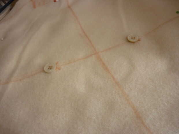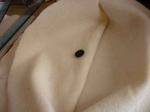 Tomar un botón blanco y negro y colocarlos a ambos lados de la tela. El botón negro va en lo que será la cara y el blanco va en el lado "equivocado" de la tela. Coser un botón a otro usando una aguja e hilo. Esto formará un asimiento más firme y los ojos será menos probable que se caiga. A menos que usted tire de ellos sin piedad.