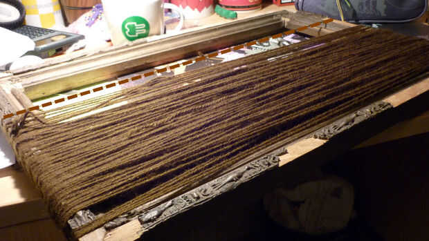 Tome un pedazo de lana y mida alrededor de su cabeza donde desea que su línea del cabello para ser. Ahora el doble y añadir unos 5cm (2 in) de extra. En mi caso fue 40cm y la suerte quiso que, tenía un marco del mismo tamaño. También puede trabajar sin un marco o con un pedazo de tablón, pero será mucho más difícil.