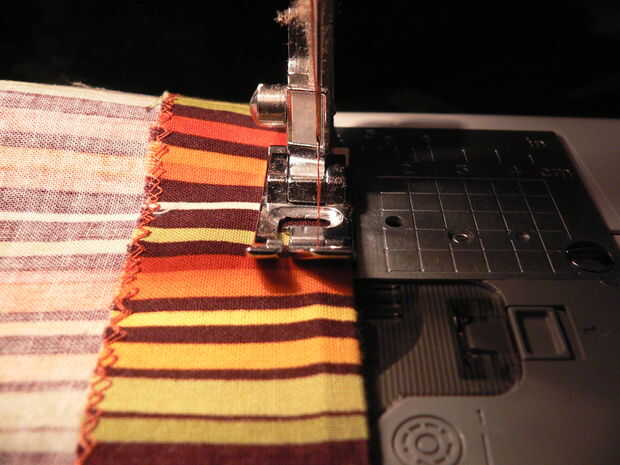 Coser una costura a lo largo de la zig llegamos borde para crear la cubierta para el elástico en la cintura. Asegúrese de dejar una 2" abrir para que usted puede insertar el elástico una vez que la falda. Bloquear en su costura va hacia adelante y hacia atrás al principio y al final de la costura.