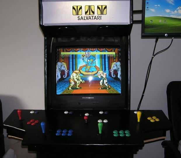 construí esto un par hace años. Es muy popular en los partidos, especialmente los juegos de 4 jugadores. Básicamente es un gabinete de la arcada construido alrededor de una computadora MAME. Tiene cerca de 3000 juegos jugables.