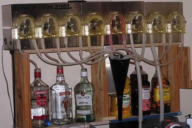 Se trata de una versión de un artículo bueno, pero tenía que compartirlo. La bebida-o-Tron fue creado por piratas mágicos en las montañas de Santa Cruz. Dispensará 8 diferentes líquidos en cualquier combinación que usted puede venir para arriba con. Siendo el más popular el té helado de Long Island, ver el video.