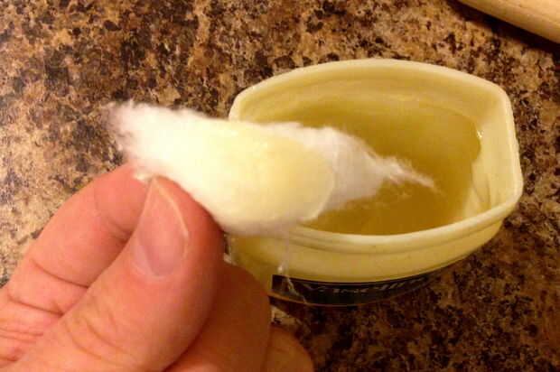 2. Deslice el mechón de algodón en la vaselina. El truco aquí es aplicar solamente lo suficiente para "espantar" it... no quieres completamente saturado.