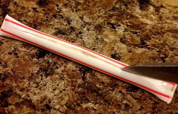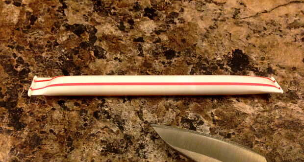 1. utilizando una cuchilla afilada, rebanada la paja longitudinalmente dejando intacto los extremos sellados.