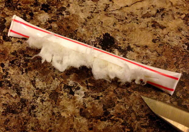 2. con el fin de la hoja, burlan el algodón hacia arriba a través del corte para "Esponjar". No se preocupe si no ve o siente la jalea de petróleo, está ahí.