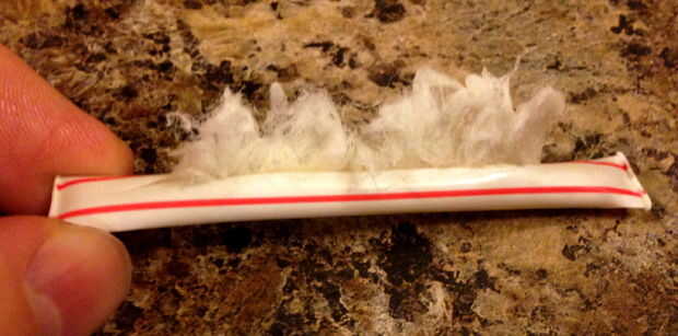 3. seguir a esponjar, creando como superficie tanto como sea posible manteniendo la mayoría del algodón dentro de la paja. No deje que la masa de fibras o puré juntos.