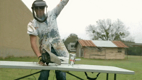 El gif de lenta anterior ofrece un vaso cae de agua como una comparación de velocidad para el inflado de un airbag. Un airbag es un amortiguador que se implementa rápidamente del salpicadero de un coche en caso de choque, con el fin de reducir el daño a la cara y el torso del conductor y pasajeros. Grandes agujeros en la parte posterior de la bolsa de aire significan que después de ser desplegado, el airbag empieza a desinflarse inmediatamente. Bolsas de aire no son obligatorios en los coches australianos, a pesar de ser probado como dispositivos de seguridad muy eficaz.