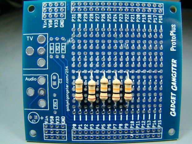 Skip P0, P2, P4, P6 y P8 dejando suficiente espacio para cada resistor.
