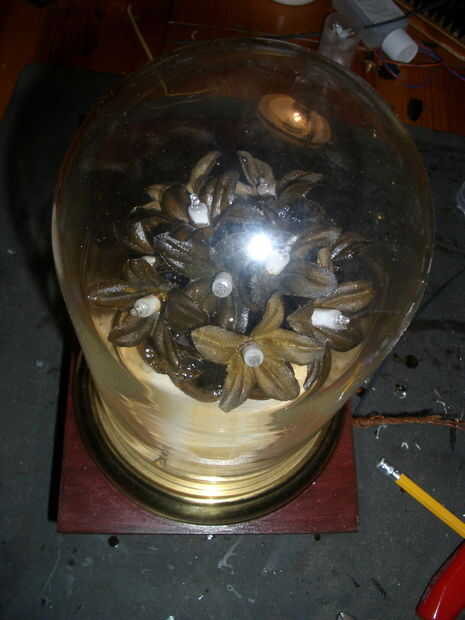 Holahoy me gustaría mostraros un terrario Steampunk / planta observador. Dentro de está sentado un "Venus Fly Trap"La Glastank es una vieja bombilla 2000 vatios y el pequeño depósito es un Neonbulb. Una bomba vierte en el empuje de un botón auto