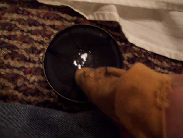 Poner 1 dedo en el trapo y envolver alrededor de su dedo como se muestra. luego frotar el dedo en el pulimento y conseguir una buena cantidad en el trapo.