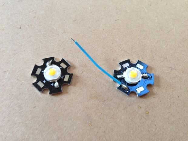 Soldar LEDs en PCB y conectar un par de unidades en serie con el alambre.