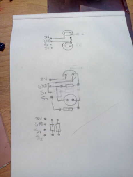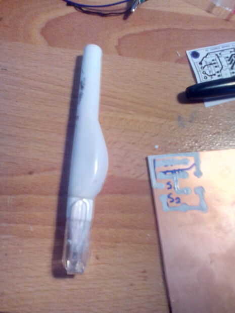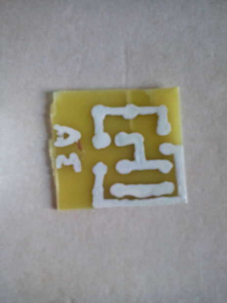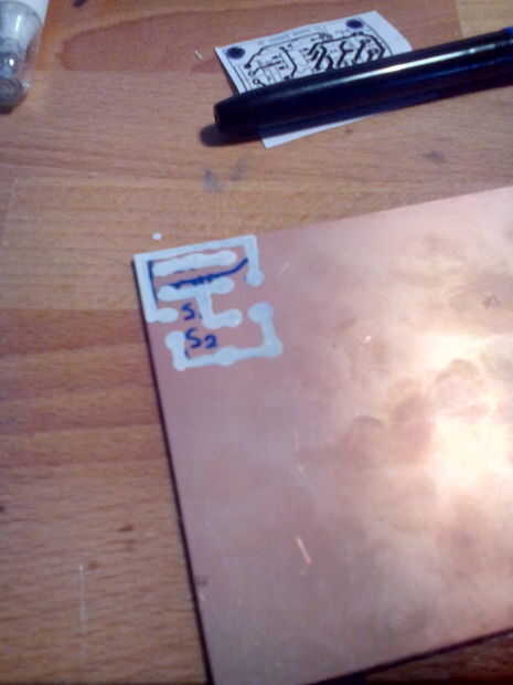 Dibujar el circuito en el cobre con el lápiz y sobrescribir con el blanco