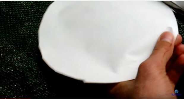 Primero se corta un círculo de papel y luego cortar una línea como en la foto (o vídeo)