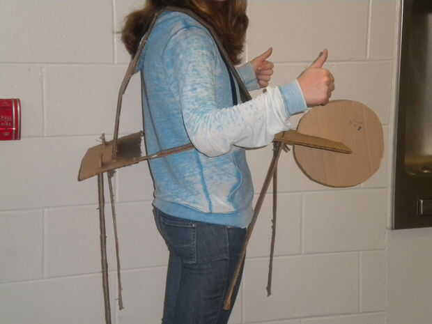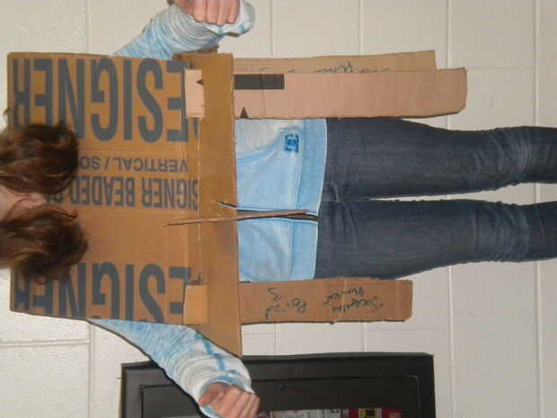 Este traje fue diseñado para ser usado por niños de la escuela; es el disfraz perfecto para Halloween, vestido o juego de la escuela, alrededor de la casa. El traje está hecho de cartulina ranurada, que hace muy fácil de montar y desmontar. Porque ha