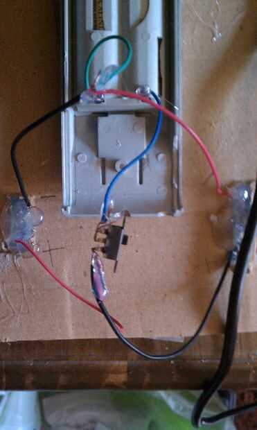 He hecho un pequeño diagrama mostrando donde van todos los cables. Es muy fácil de leer. Líneas rojas son cables. Conecte todos los cables les torciéndolos juntos y luego poner pegamento caliente en las conexiones.