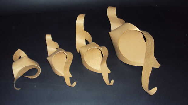 Puedes ampliar o achicar tu modelo dependiendo del tamaño que usted requiere. En este caso, la forma más grande encaja en un imaginario rectángulo exterior de dimensiones 15 x 12 x 12 pulgadas. La forma final podría realizarse fuera de la hoja de Marfil así.