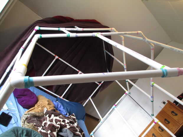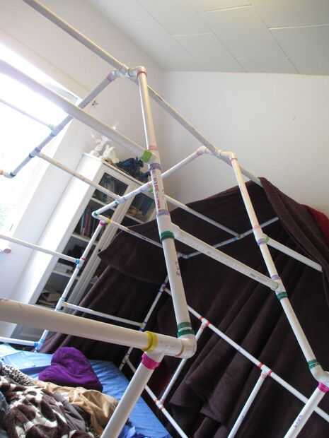 Greg cuando vio mi fortaleza de manta, que inmediatamente se inspiró para crear su propia versión.Paso 1: materiales tubos de 12 x 10 pies pvc 3/4"dividido en16 x 38-3/4"10 x 12-1/4"4 x 12-1/4"(esta dimensión se puede variar si usted q