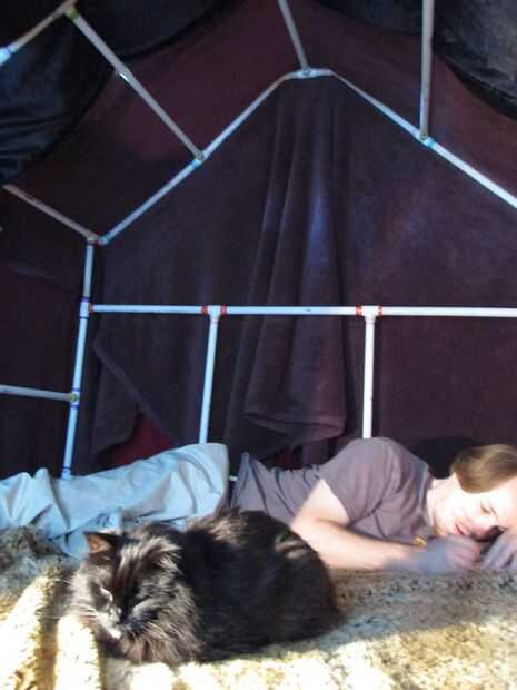 Greg cuando vio mi fortaleza de manta, que inmediatamente se inspiró para crear su propia versión.Paso 1: materiales tubos de 12 x 10 pies pvc 3/4"dividido en16 x 38-3/4"10 x 12-1/4"4 x 12-1/4"(esta dimensión se puede variar si usted q