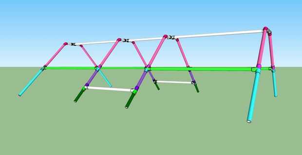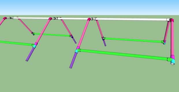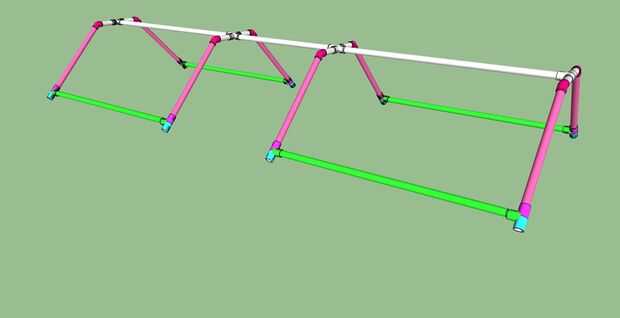 Añadir las tuberías horizontales que encajan en las barras como se muestra en la segunda foto.