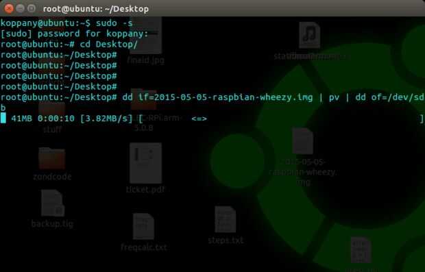 Si desea conocer el estado de la quemadura, puede instalar pv por escribir "apt-get install pv" y luego el comando alterado de "dd si = ruta/a/imagen | PV | DD de = ruta/a/unidad de memoria ".