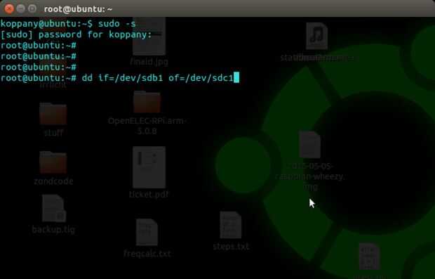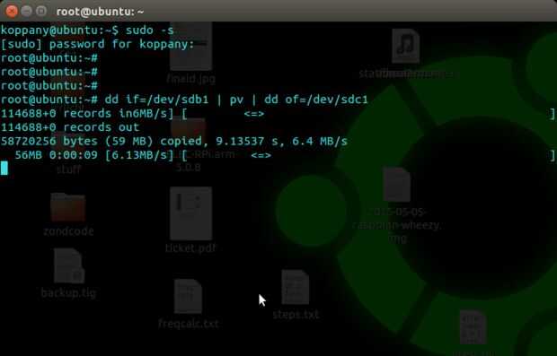 El comando para mí es "dd si = / dev/sdb1 de = / dev/sdc1" pero he usado la versión "pv" porque me gusta ver cómo funciona hacia fuera. Es el mismo como en el último paso, sólo cambiar el "if" y "parte".