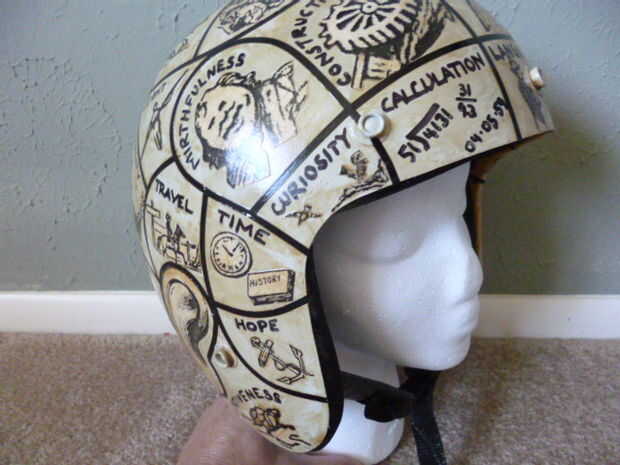 Más tarde me encontré con http://bellehelmets donde ilustrador Danielle Baskin transforma el casco aburrido en un accesorio de moda único. Yo realmente como sus diseños, pero porque no tengo una bicicleta (sólo una minibike), soy un artista horrible y no tiene mucho ingreso, intenté hacer un casco de frenología para usando un ahorro tienda casco e imágenes de Google.