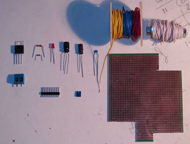 6) 100nF condensador pequeño (etiqueta suele 104 M, para obtener más información de los códigos de color del condensador, ir aquí)