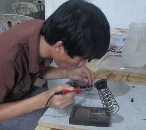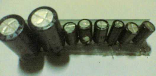 Conectar los condensadores en paralelo, ver fig.3. puede usar alambre de #22solid para la conexión, asegúrese de prueba 1 el capacitor con el multímetro antes de soldar. Soldadura es bastante peligrosa, así que mucho cuidado, extremidad que suelda es muy caliente, sugiero utilizar soporte de soldadura para evitar daños a su lugar de trabajo